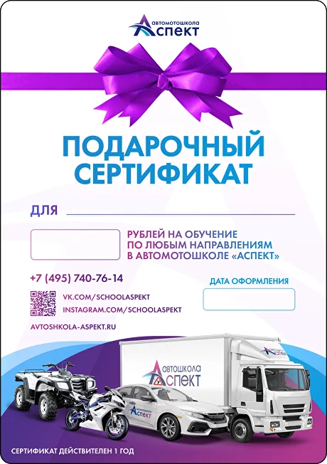 *Предоставляется ООО "Учебный центр Автошкола «Аспект»